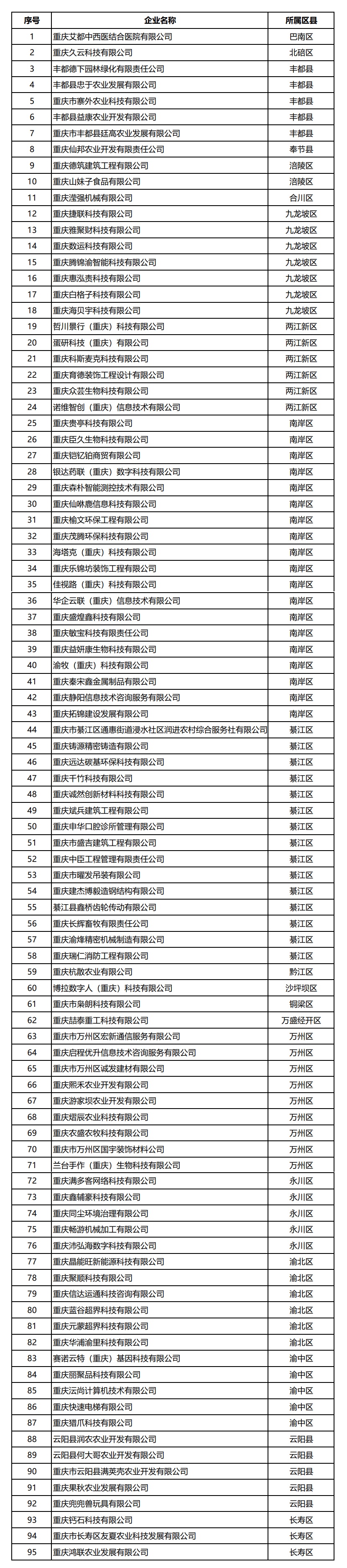 日前,重庆市科学技术局公示了“2026年第一批拟入库科技型企业名单”,共95家。