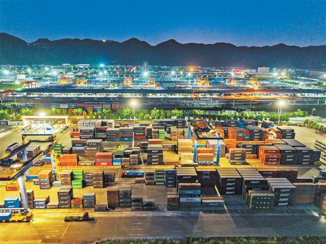 西部陆海新通道一季度运量同比增长超30%发表时间:2026-04-27浏览次数:2 4月25日晚,位于沙坪坝区的西部陆海新通道重庆无水港灯火通明,一派繁忙景象(无人机照片)。 据国铁成都局重庆铁路物流中心统计,重庆西部陆海新通道一季度共发送班列超400列、装车近17000车,运量同比增长超30%,实现列数与装车量双提升、双增长。 近年来,位居内陆腹地的重庆,构建了面向“东南西北”、统筹“铁公水空”的现代化集疏运物流体系,实现多式联运深度融合,通江达海、链接世界。 来源:重庆日报来源: